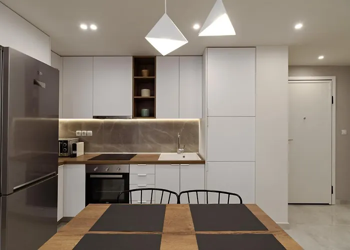 Localizado a 25 minutos a pé de Museu de Arte Contemporânea Macedónia, o Blu & Marrone Suites-Parking Included Tessalónica tem vista para a cidade. Localizado no bairro Paralia Thessalonikis de Tessalónica, este apartamento dispõe de terraço com vista para o jardim.